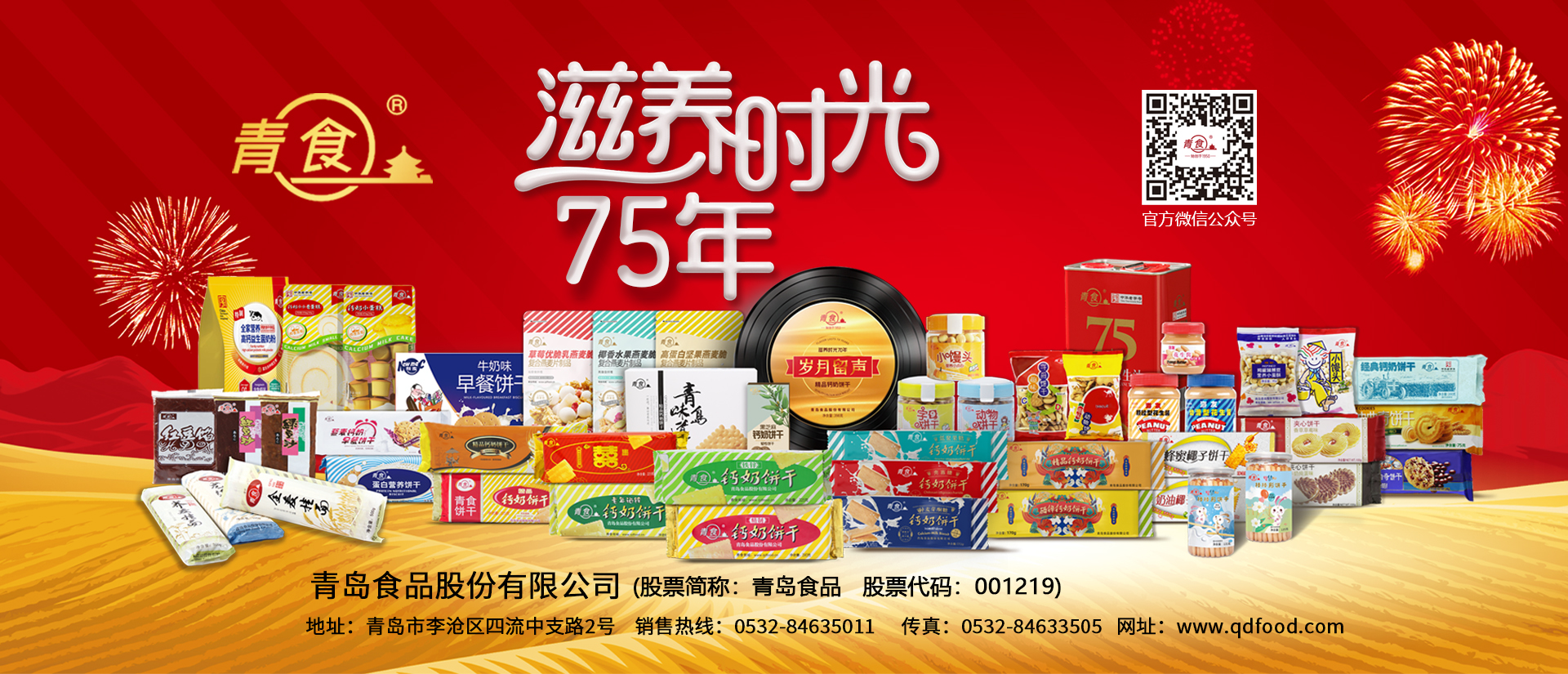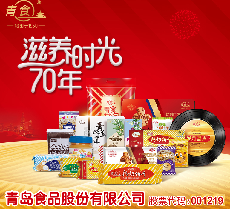 青島食品股份有限公司創建于1950年,是國內輕工行業的重點骨干企業,中國焙烤食品糖制品行業餅干十強企業。2017年,公司在新三板上市。主要生產經營餅干、花生醬、豆餡、巧克力
